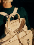 A timeless redesign of the typical backpack used by hunters and farmers in the Alps, especially in South Tyrol. Handcrafted in Italy in water repellent cotton canvas, the rucksack opens wide at the top with a zipper for easy access. It features adjustable high quality leather straps with felt lining, a snap-hook that adds a closing option, two external quick-access pockets with buckled leather straps on the front and one internal zipped pocket to safely store wallet, keys and others essentials. Carry it by hand or wear it as a backpack.